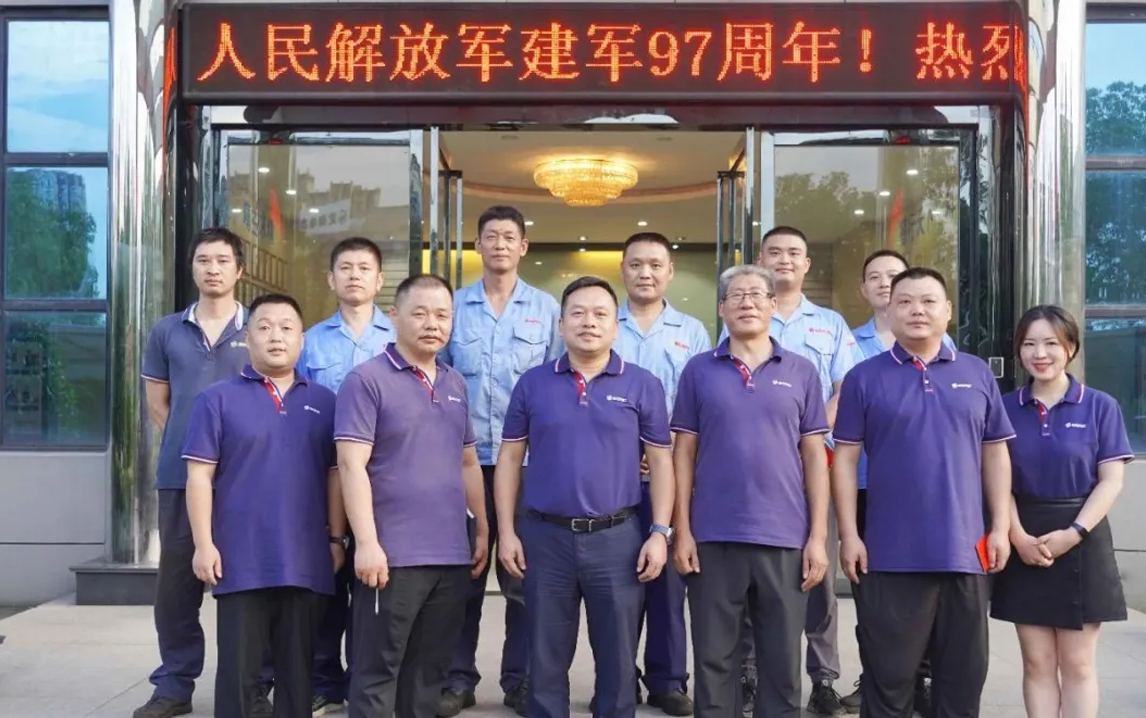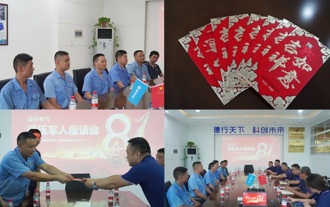 为了进一步弘扬拥军优属的光荣传统,华体会手机网页版登录入口电气组织开展“八一建军节退伍军人座谈会”。会上,总经理王远锋首先代表全体员工向8位退伍军人送上美好的节日祝福,并对退伍军人在公司发展过程中做出的突出贡献给予充分肯定,鼓励他们继续发扬优良传统和作风,保持军人严谨的作风、严明的纪律和强烈的责任感,为公司的发展贡献更大的力量。参会的退伍军人们也结合个人实际,依次交流发言。会后,公司为退伍军人发放节日祝福红包,并集体合影留念。